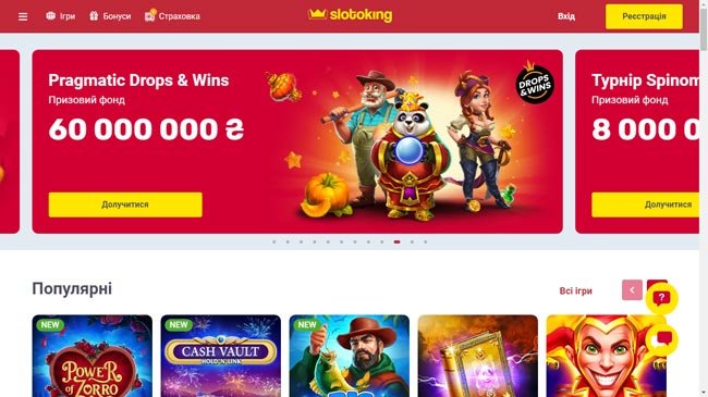 Казино Слотокинг - це надійна та захоплююча платформа, яка пропонує високу якість, розмаїття і зручність гри. Чи ви новачок у світі азартних ігор або досвідчений гравець, ви знайдете тут ігри на свій смак. Слотокинг забезпечує надійність та безпеку, використовуючи передові технології. Великий вибір ігор, включаючи слоти, карточні і настільні ігри, ігри з живими дилерами, лотереї та інші варіації, гарантує багато годин захоплюючої гри. Додатково, зручний інтерфейс і можливості налаштування гри забезпечують комфортну геймінг-сесію. Запрошуємо вас спробувати свою удачу в казино Слотокинг і насолодитись високоякісними іграми та захоплюючими виграшами!