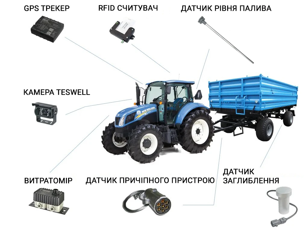 GPS контроль комбайнів в Україні, як правило, складається з: