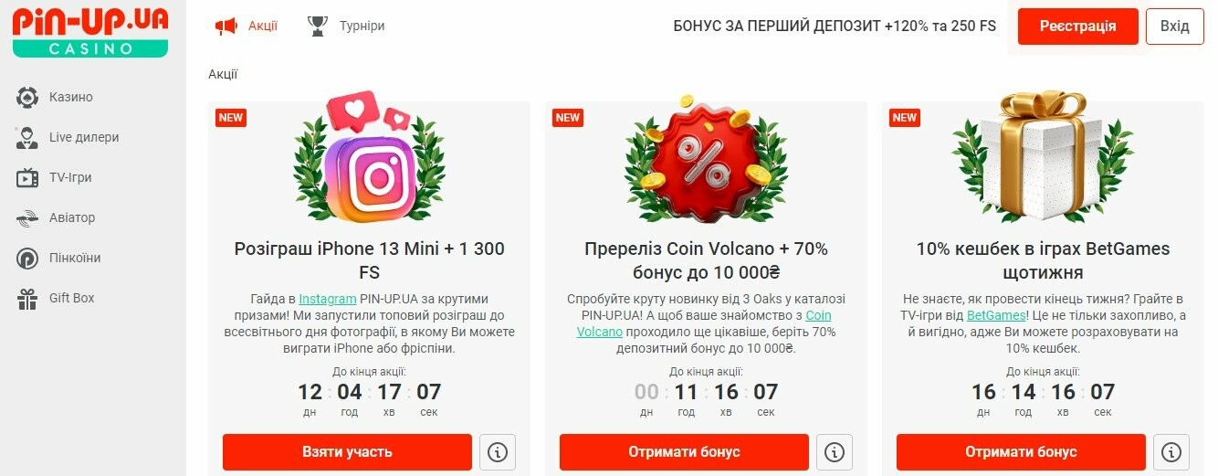 Для того, щоб привернути нових гравців, казино Pin-Up пропонує щедрі вітальні бонуси. Це може бути бонус за перший депозит або безкоштовні обертання на популярних слотах.