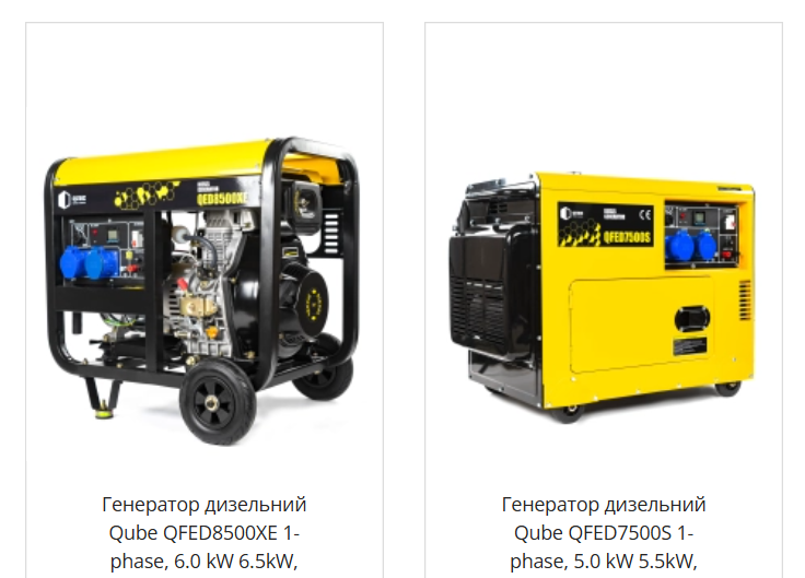 - Дизельні генератори – потужне рішення для тривалої роботи та великих навантажень. Вони економічні у витраті палива та мають довший термін служби.