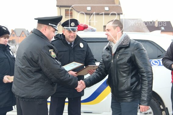 9 січня керівник Управління превентивної діяльності ГУНП Олександр Ляхович та начальник Новоград-Волинського відділу поліції Юрій Кононенко вручили Подяки та цінні подарунки жителям райцентру, які 5 січня затримали молодика під час спроби зґвалтувати дитину.