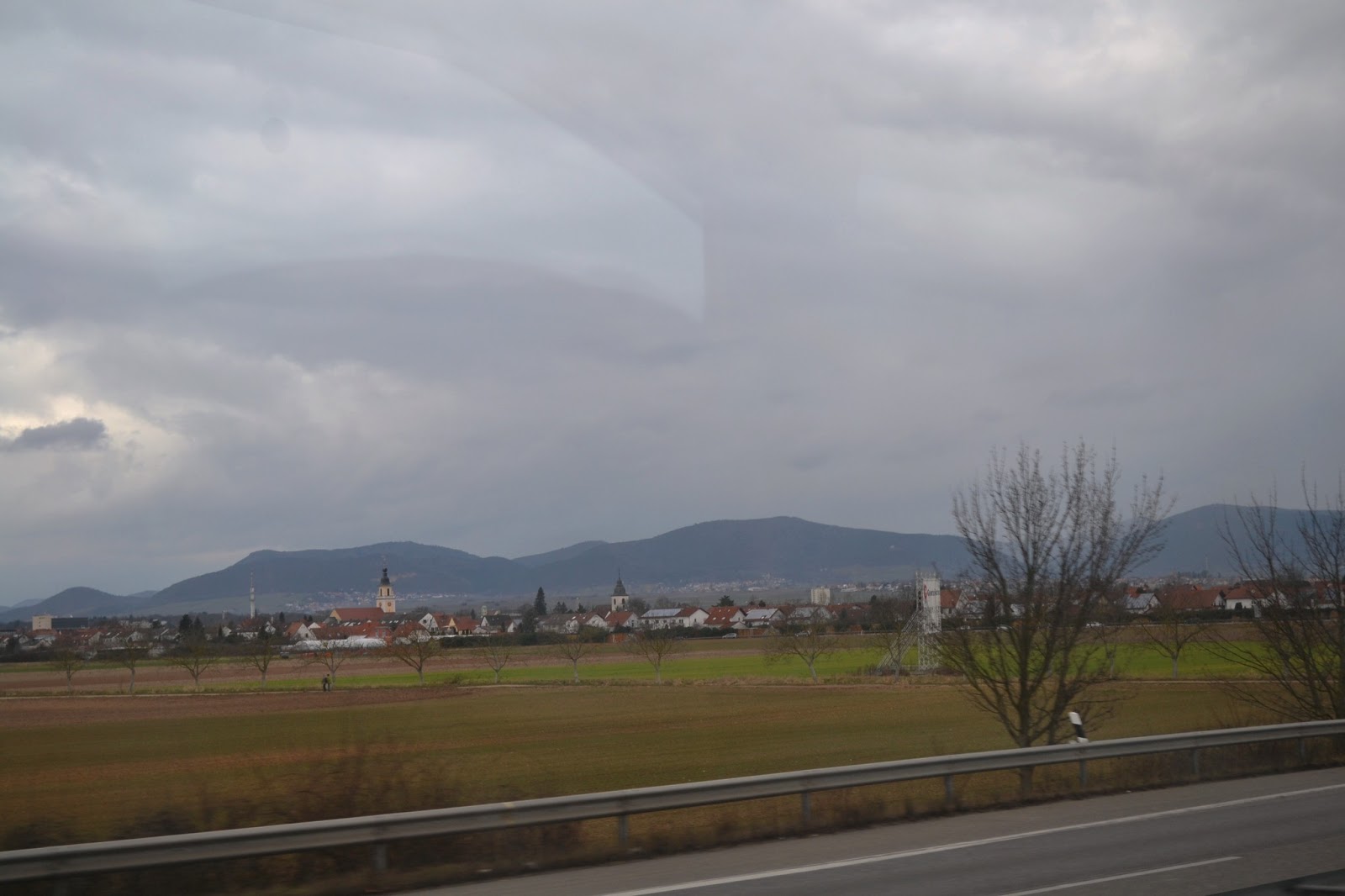 Далі нас чекало 2,5 години автобусом. Їхали ми вночі, тому вид за вікном ми розгледіли лише коли вже поверталися назад до Франкфурту. Усю дорогу видно поля. Поля, які вже чимось засіяні або ж будуть засіяні (це не дивлячись на те, що в Європі не надто родюча земля). Окрім цього можна побачити багато вітряків і навіть ряди сонячних батарей. Дорога ідеально рівна і, як сказав Саша, можна пити гарячий чай і не обляпаєшся.