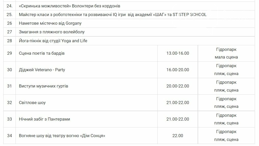 (можна виставляти локації, робити перформанси, фото-сушки, вуличний театр, дитячі забави, проводити змагання, читати вірші і малювати картини, майстер-класи, флеш-моби і презентації! - все у ваших руках)», - зазначають організатори заходу. А організовує святкування управління у справах сім’ї молоді та спорту Житомирської міської ради.
